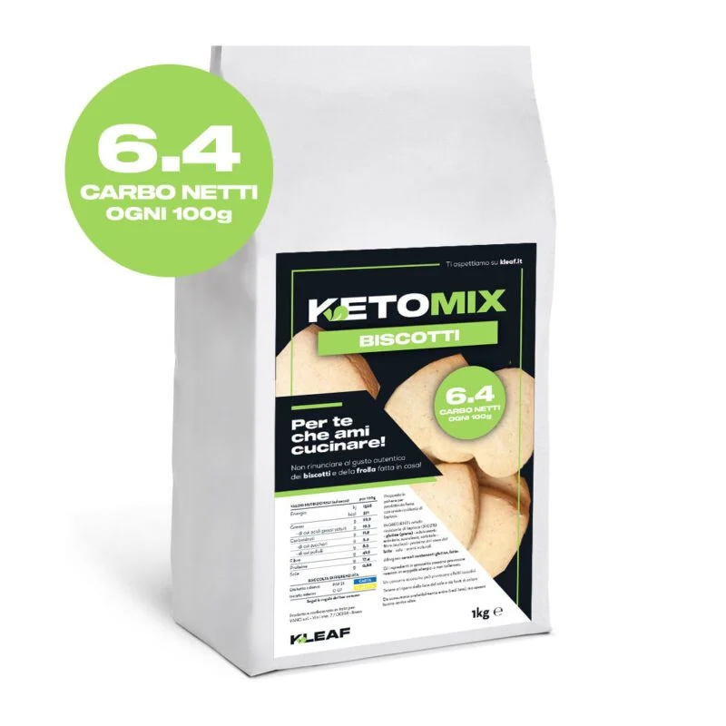 Il KETOMIX - Biscotti della linea KLEAF è un mix di farine appositamente formulato per coloro che seguono una dieta chetogenica o desiderano ridurre l'apporto di carboidrati nella propria alimentazione. KETOMIX – Biscotti della linea KLEAF: il mix di farine low carb per la dieta chetogenica e regimi a basso apporto di carboidrati. Prepara deliziosi biscotti e ottima pasta frolla, leggeri e salutari senza rinunciare al gusto autentico.